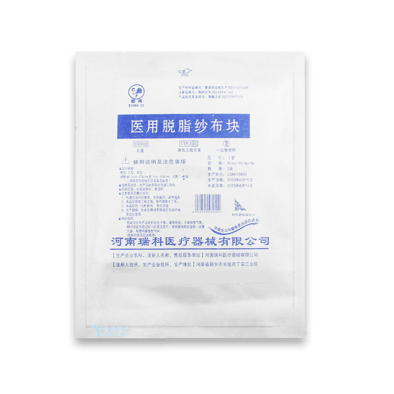 ผ้าก๊อซทางการแพทย์ Xiong Ji ขนาด 8 ซม. x 10 ซม. x 8 ชิ้น แบบปลอดเชื้อ ใช้แล้วทิ้ง สำหรับปิดแผล ผลิตที่เหอหนาน