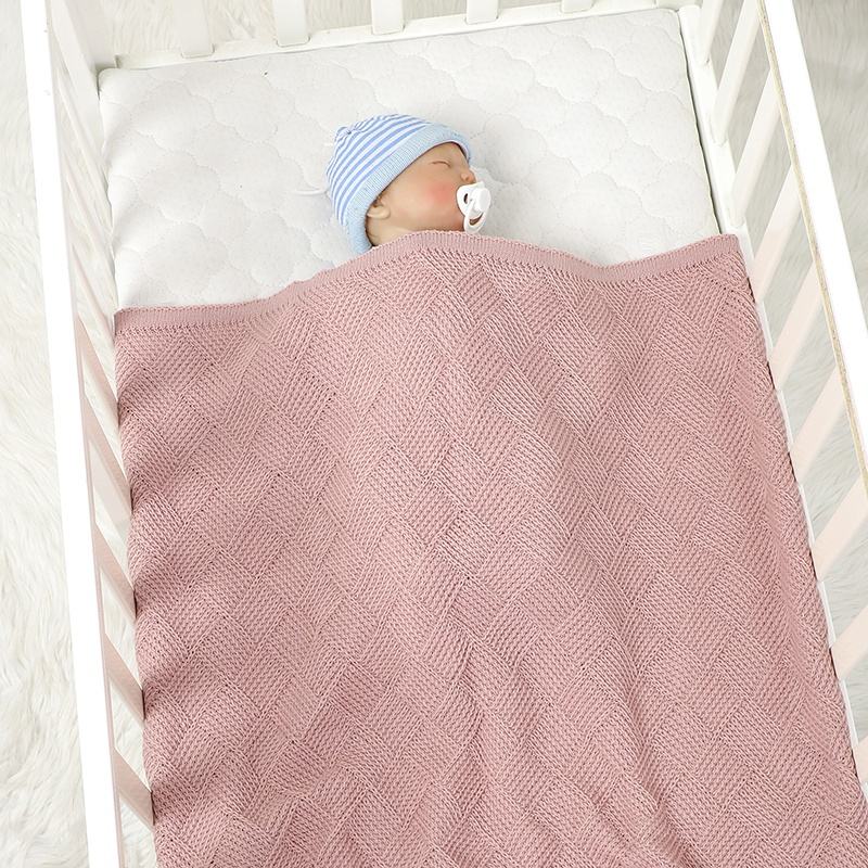Xiti ผ้าห่มเด็กสีทึบทอสบายกลางแจ้งหนาอบอุ่นผ้าห่มห่อตัวทารกผ้าห่มถักลายสก๊อต
