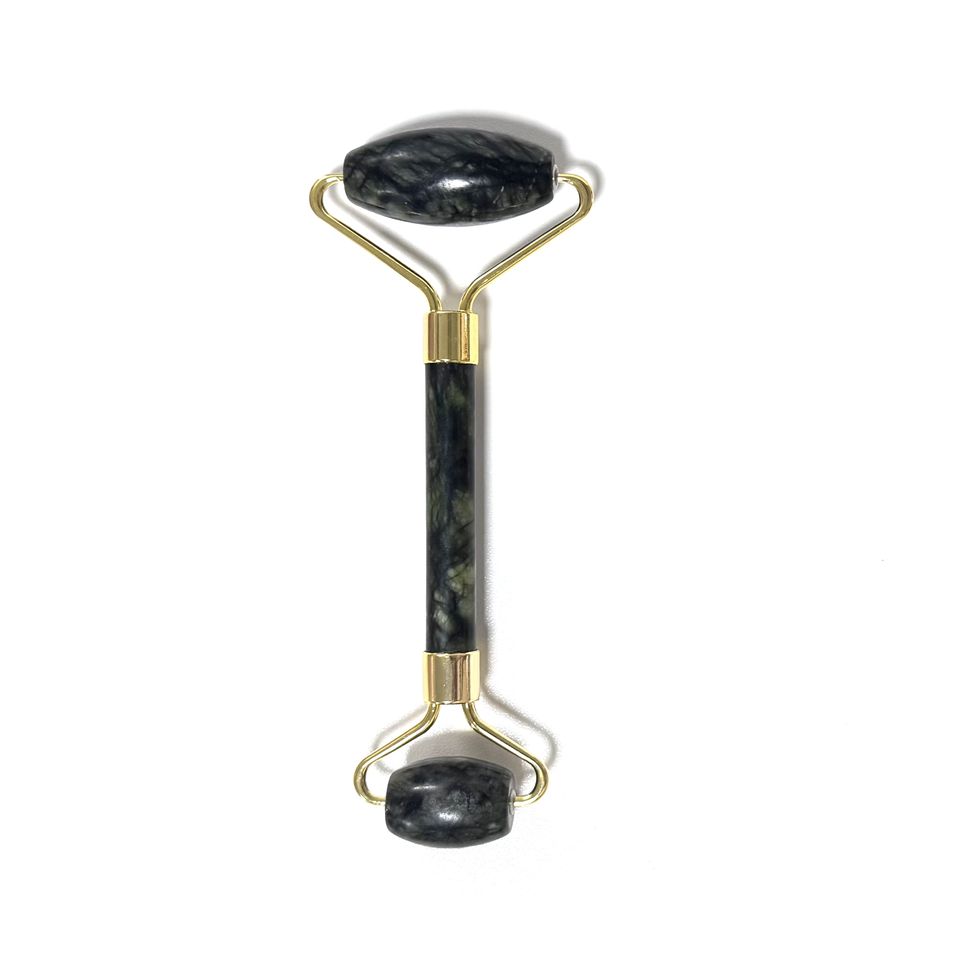 แผ่นขูดหน้าหยกซิ่วหยานแบบสองหัว อุปกรณ์นวดหน้า หยกสีเขียว หยกเนฟไรต์ ลูกกลิ้งนวดหน้าสีเขียว