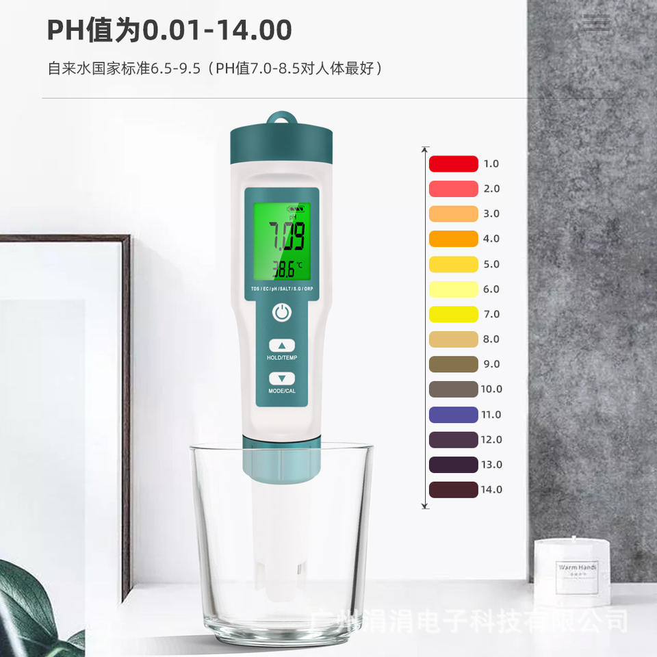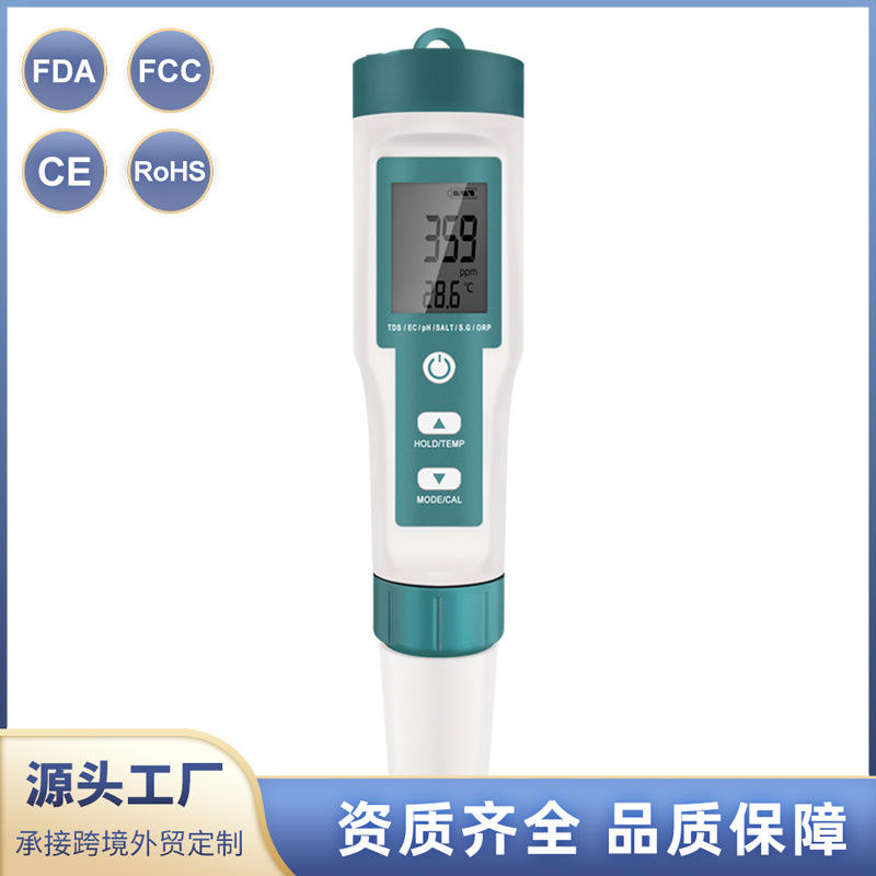 เครื่องวัดคุณภาพน้ำ 7 in 1 ยี่ห้อ Xiuyuan วัดค่า pH TDS EC อุณหภูมิ ความเค็ม ความถ่วงจำเพาะ ORP แบบพกพา สำหรับทดสอบน้ำดื่ม