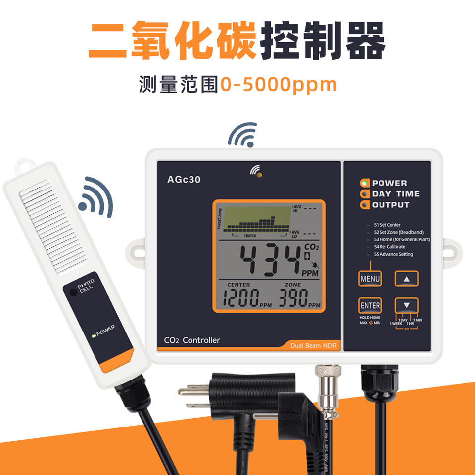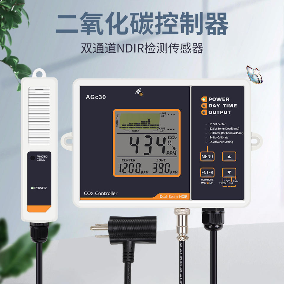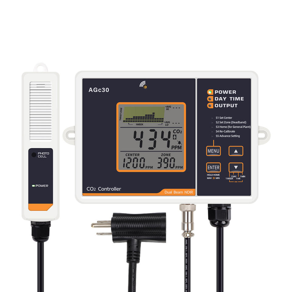 ตัวควบคุม CO2 รุ่น Xiuyuan Agc30 พร้อมเซ็นเซอร์ NDIR แบบลำแสงคู่ สำหรับปลูกพืชในโรงเรือนและระบบไฮโดรโปนิกส์