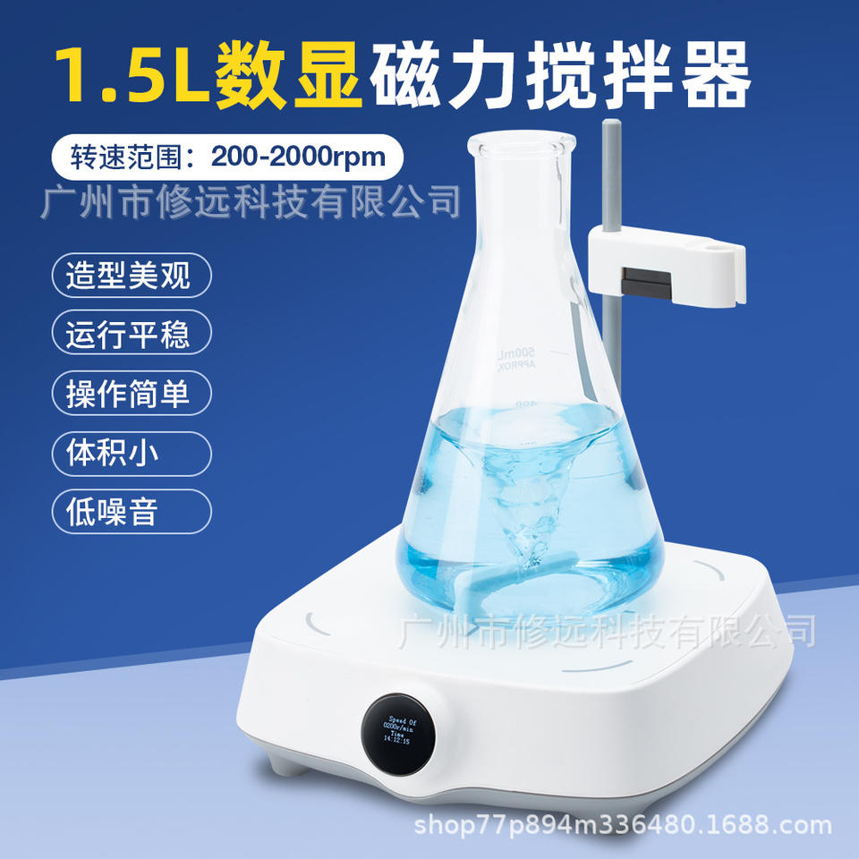 เครื่องกวนสารแม่เหล็กดิจิตอลขนาดเล็ก Xiuyuan ความจุ 1.5 ลิตร 200-2000 รอบต่อนาที พร้อมตัวตั้งเวลา สำหรับใช้ในห้องปฏิบัติการ