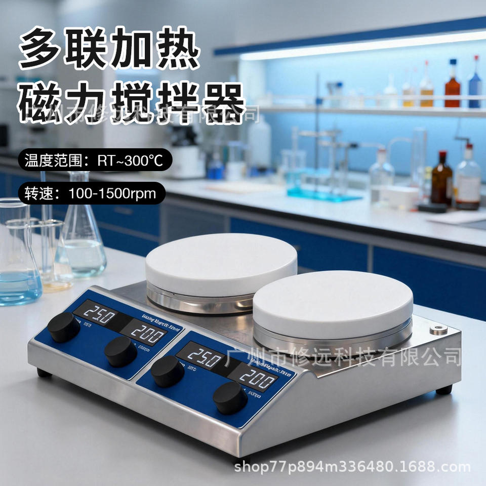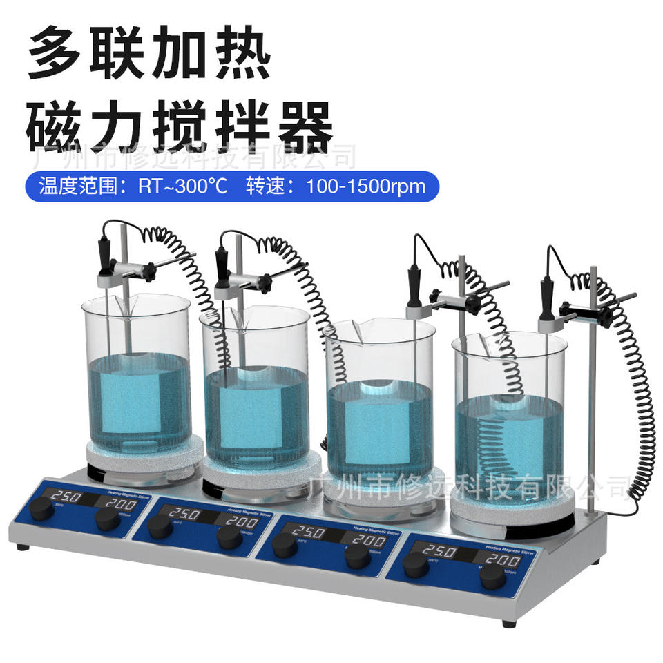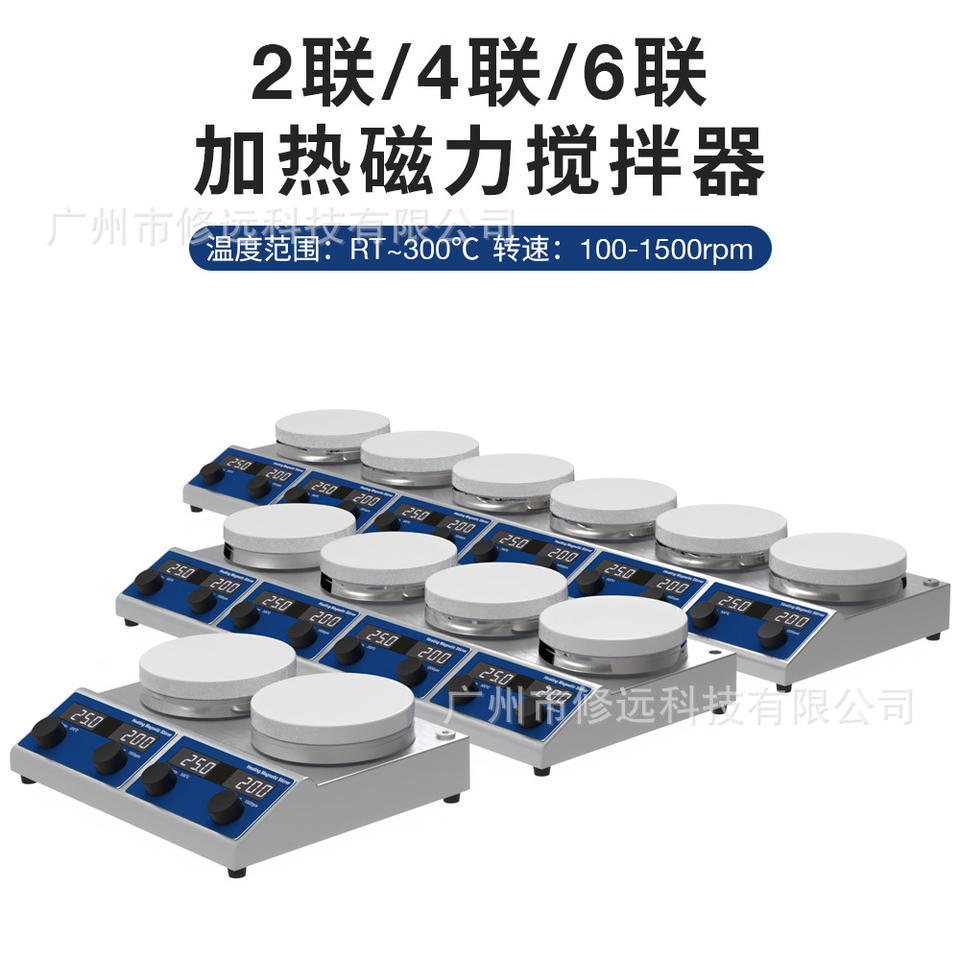 เครื่องกวนสารแม่เหล็กแบบหลายหัวพร้อมระบบทำความร้อน ยี่ห้อซิ่วหยวน หน้าจอดิจิตอล 2 4 6 หัว ปรับความเร็วได้ สำหรับใช้ในห้องปฏิบัติการ