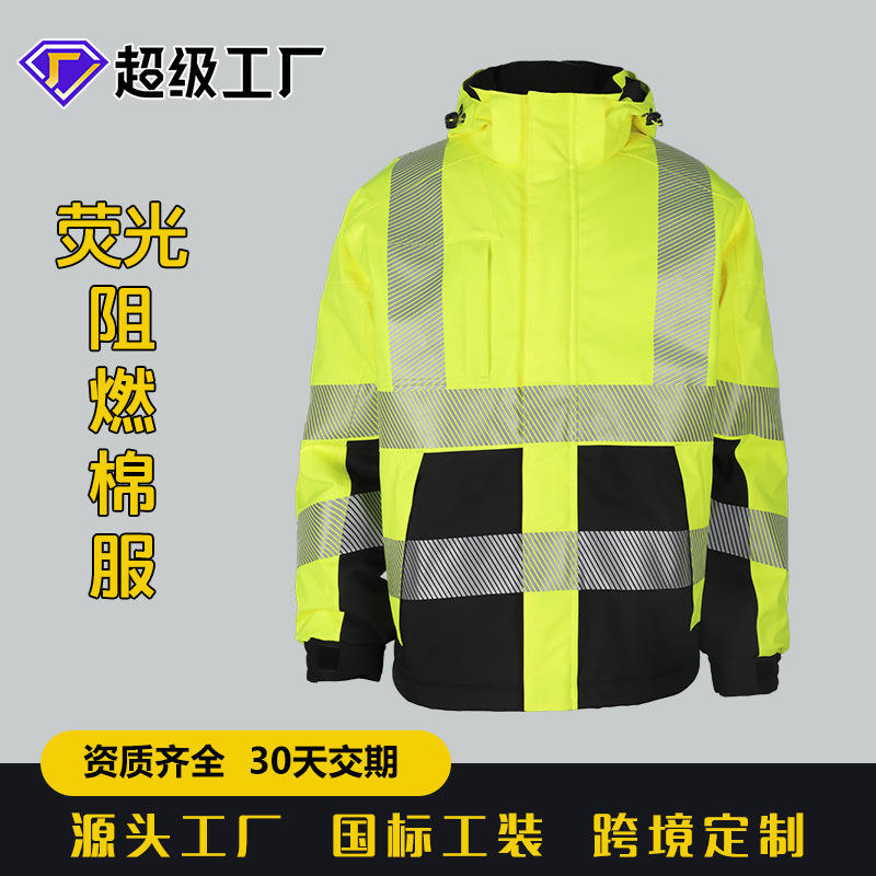 Xk2024 5566 เสื้อแจ็คเก็ตทำงานทนไฟสำหรับผู้ชาย เสื้อโค้ทนิรภัยสะท้อนแสงมองเห็นได้ชัดเจนสำหรับงานเคมี โลหะวิทยา และปิโตรเลียม