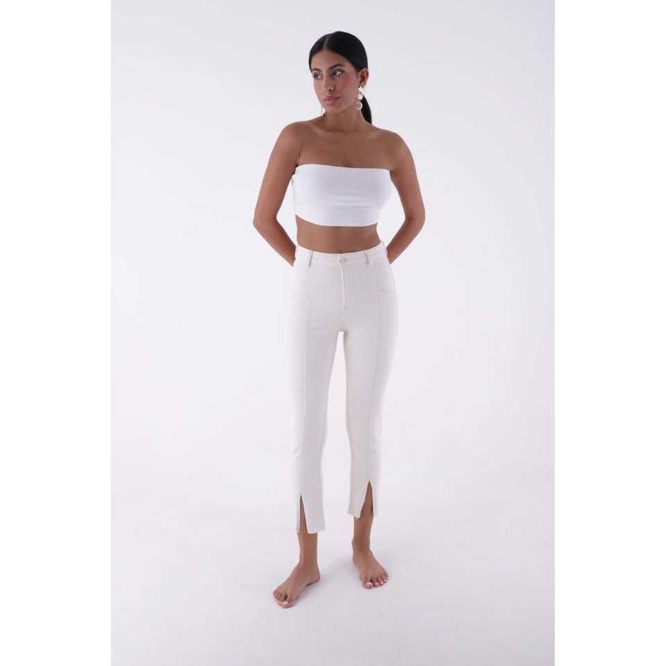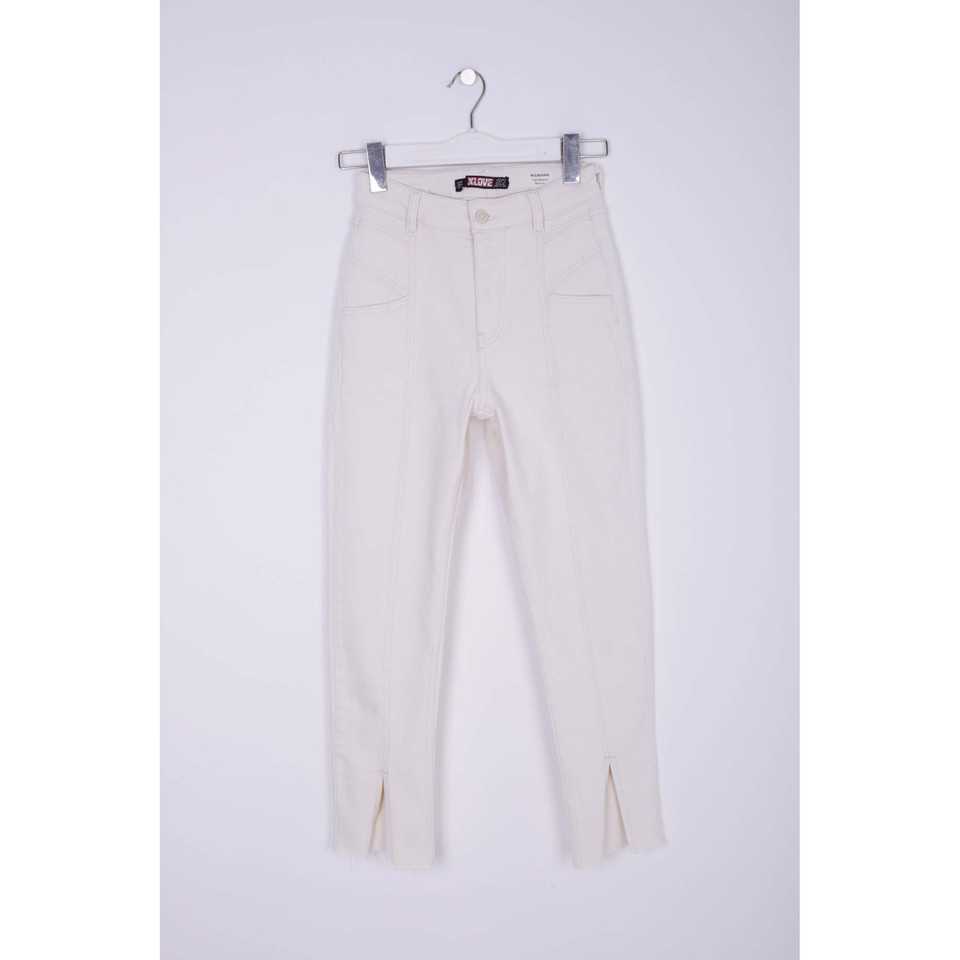 กางเกงยีนส์ทรงตรงสีขาว Xlove พร้อมดีไซน์ผ่าด้านหน้าสำหรับผู้หญิง