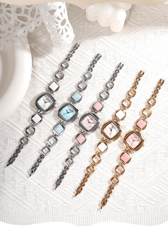 นาฬิกาควอทซ์ประดับเพชรสำหรับสุภาพสตรีที่สง่างามของขวัญคริสต์มาสดีไซน์ไม่ซ้ำใครดีไซน์ประณีตของแม่ไข่มุก