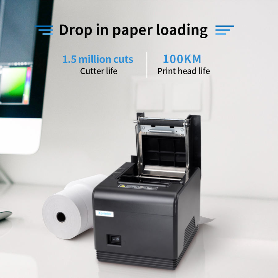 Xprinter XP-Q800เครื่องพิมพ์ความร้อน80มม. คุณภาพสูง USB + Serial + LAN เครื่องพิมพ์ใบเสร็จสำหรับร้านอาหาร