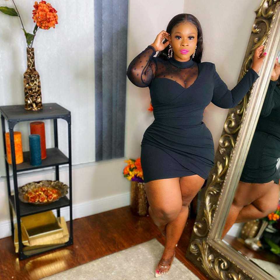 Xqy1629กระโปรงสั้นคอกลมแขนยาวสำหรับผู้หญิง, เดรสกระโปรงสั้นทรงสลิมฟิตขนาดใหญ่พิเศษ