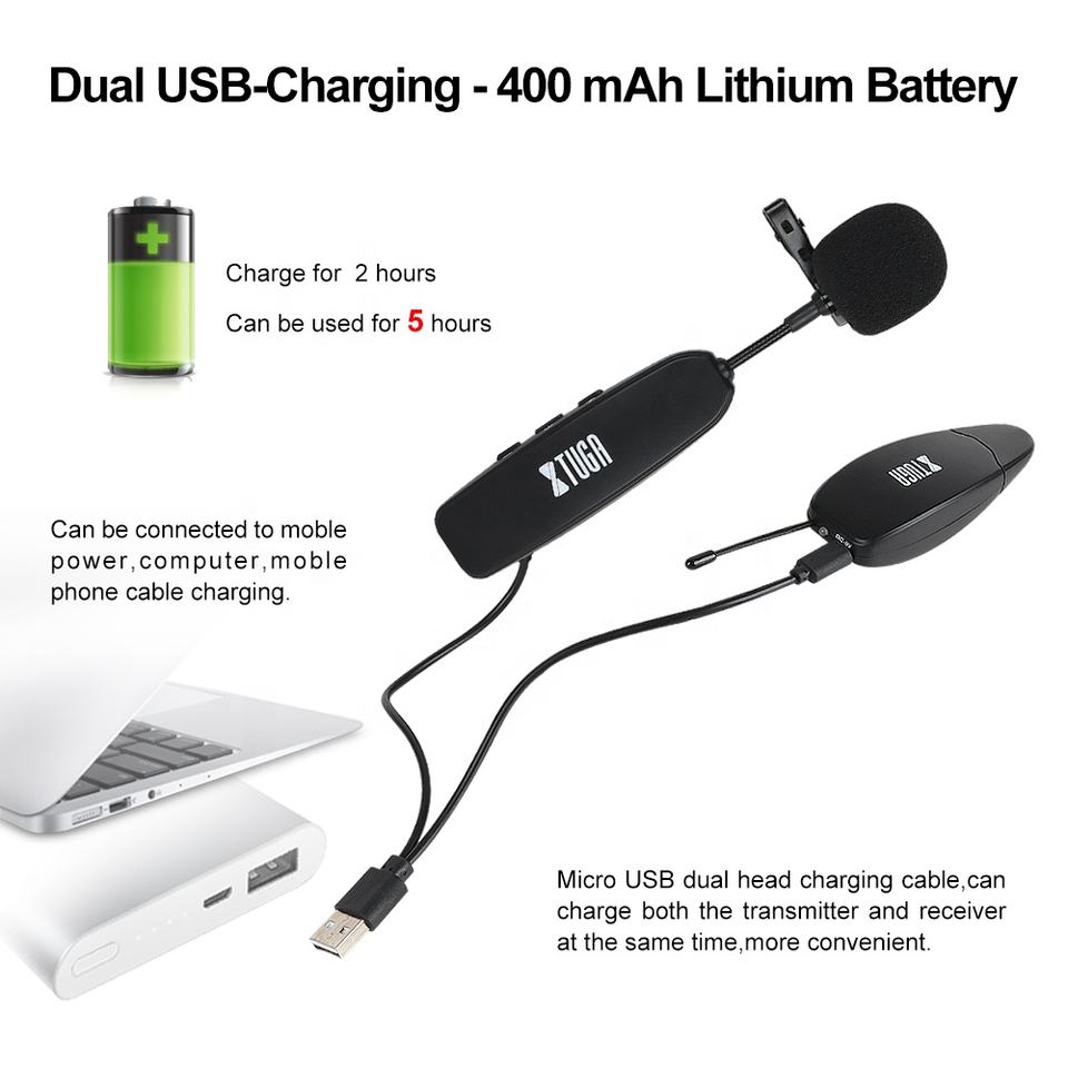 ไมโครโฟนไร้สายแบบหนีบเสื้อ รุ่น Xtuga KX-624 ใช้ได้กับกล้อง คอมพิวเตอร์ วีซีดี เครื่องบันทึกเสียง สำหรับการประชุม
