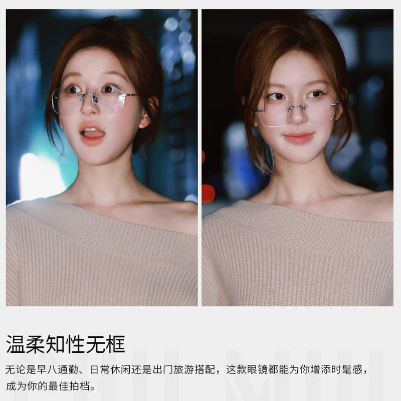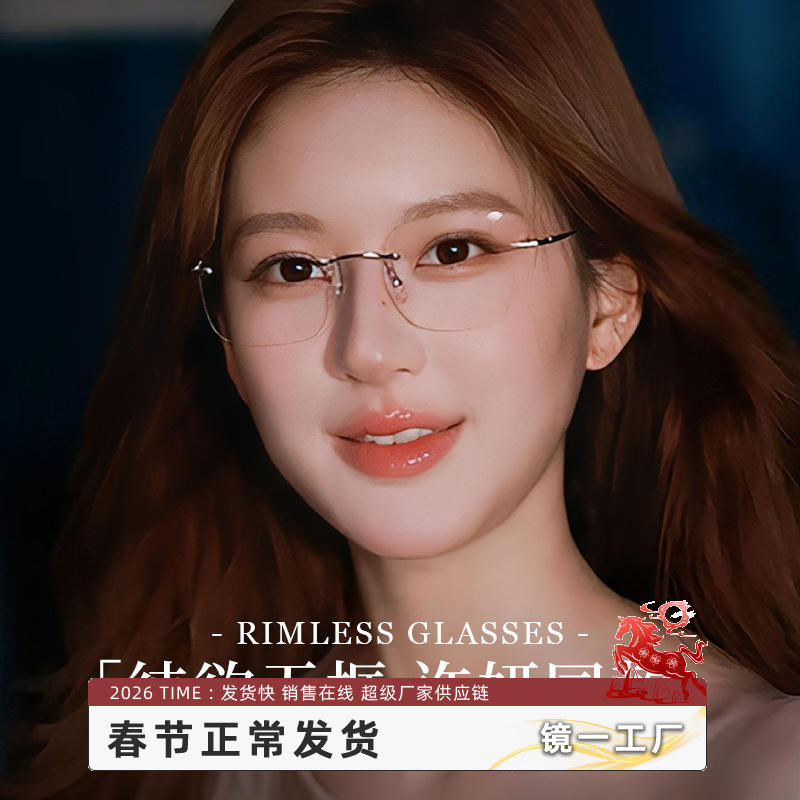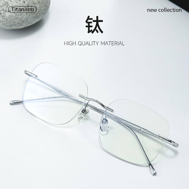 ซู ยานกรอบแว่นตาไร้ขอบ สีเงิน ทรงสี่เหลี่ยม ไทเทเนียมบริสุทธิ์ ป้องกันแสงสีฟ้า สำหรับผู้หญิง รุ่นอัลตร้าไลท์ 71301