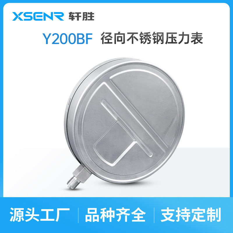เกจวัดแรงดันสแตนเลส Xuansheng Y200 ขนาด 200 มม. ความแม่นยำ 1.6 พร้อมเกลียวเชื่อมต่อสำหรับหม้อไอน้ำ