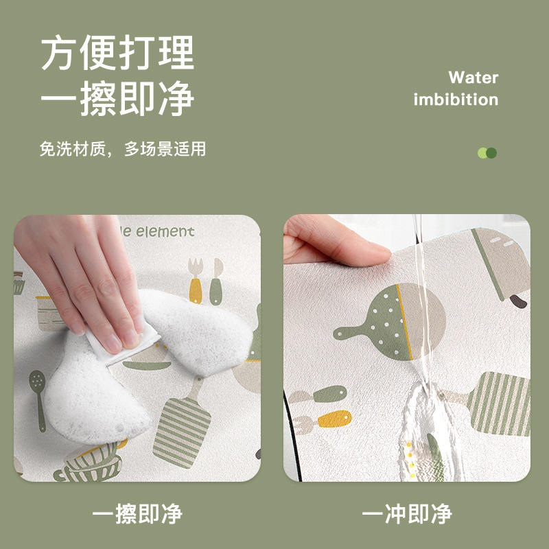 แผ่นรองกันลื่นสำหรับห้องครัวลายซวนหยวน รูปทรงสี่เหลี่ยมผืนผ้า ดูดซับน้ำได้ดี ผลิตจากโพลีเอสเตอร์และดินไดอะตอม ลวดลายแปลกใหม่