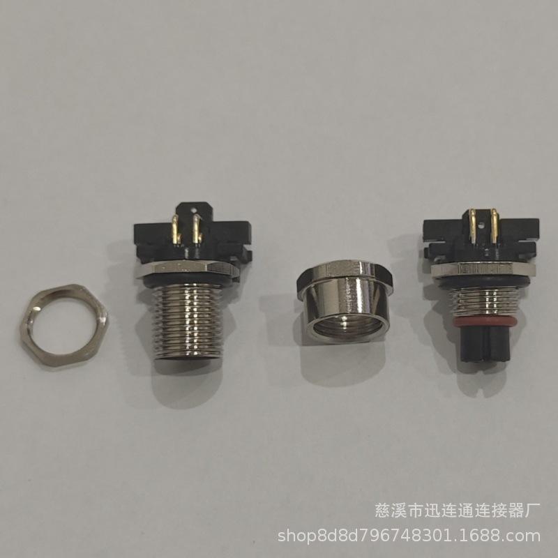 ขั้วต่อวงกลม Xunlian M12 แบบ 4 พิน ปลั๊กตัวผู้ ติดตั้งบนแผงด้านหน้า ปลั๊กเซ็นเซอร์กันน้ำ ชุบนิกเกิลเคลือบทองแดง
