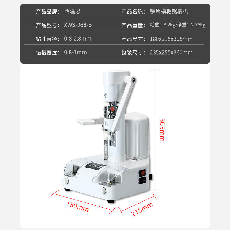 เครื่องเจาะเลนส์ไร้กรอบ Xws 988b ขนาดเส้นผ่านศูนย์กลางสูงสุด 10 มม. แบบตั้งโต๊ะ อุปกรณ์สำหรับการแปรรูปแว่นตา