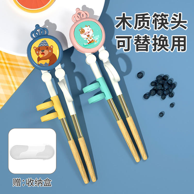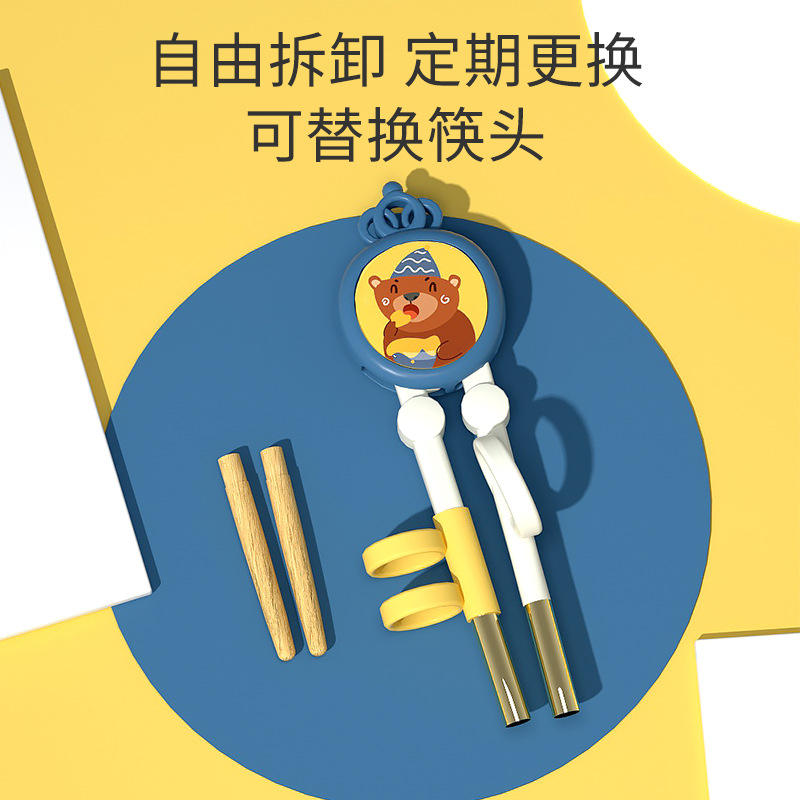 ตะเกียบ Y Crown ตะเกียบสำหรับเด็กพร้อมดีไซน์การ์ตูนหมี ปลายตะเกียบเปลี่ยนได้สำหรับเด็กอายุ 1-2 ปี