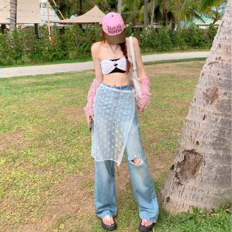 Y-Zone Women's LS Skirt Leggings Hip and Butt Cover with Lace Wrap See-Through Layered Design