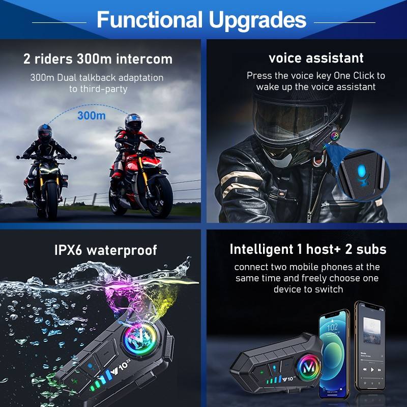 ชุดหูฟังอินเตอร์คอมสำหรับมอเตอร์ไซค์ Y10-2X 300 เมตร 2 คนขับ ความเสถียรในการเชื่อมต่อไร้สาย หูฟังติดหมวก ขายดีที่สุด