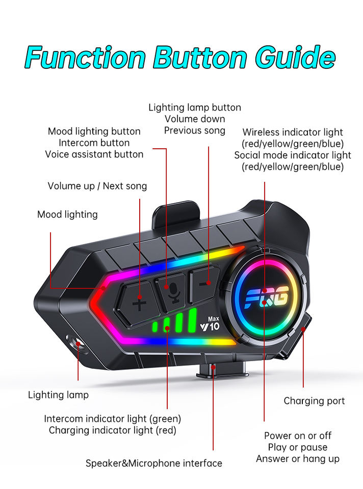 หมวกกันน็อค Y10 Max สำหรับกิจกรรมกลางแจ้ง กันน้ำ ผลิตจากพลาสติก ABS สำหรับชุดหูฟังอินเตอร์คอม เวลาใช้งาน 15 ชั่วโมง ระยะสัญญาณ 10 เมตร สำหรับขี่มอเตอร์ไซค์