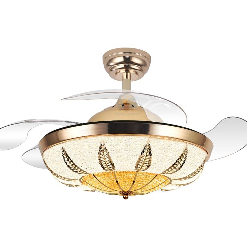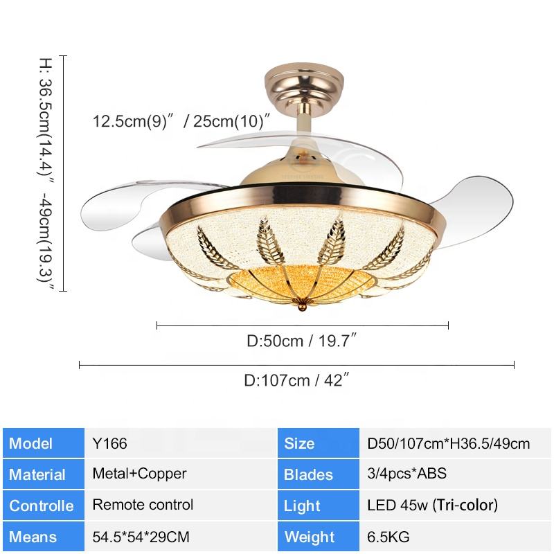 ไฟพัดลมคริสตัล Y166สำหรับบ้านดีไซน์เนอร์42-in โมเดิร์น LED พัดลมเพดานสามสี110/220V ไฟตกแต่งควบคุมระยะไกลสำหรับบ้าน