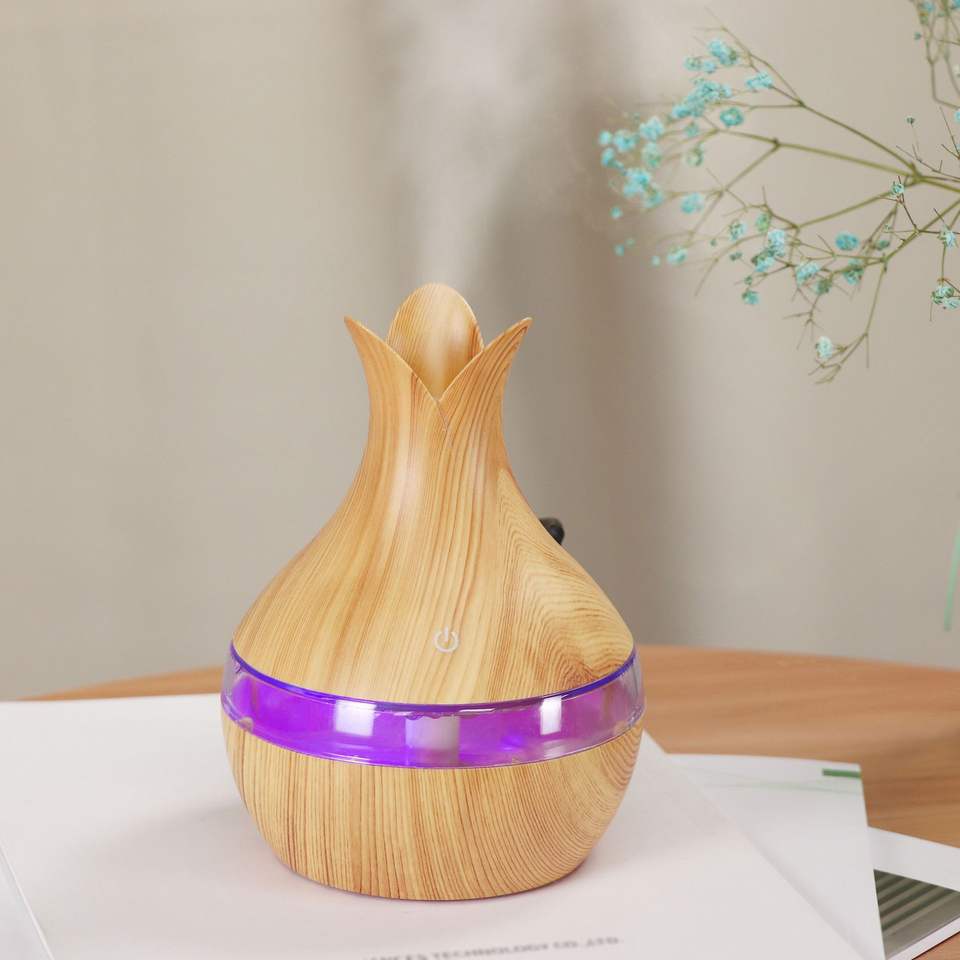 เครื่องเพิ่มความชื้นในอากาศลายไม้ Y288 ความจุ 0.5 ลิตร ใช้พลังงานจาก USB สำหรับบ้านและโต๊ะทำงาน พร้อมไฟแสดงสถานะ