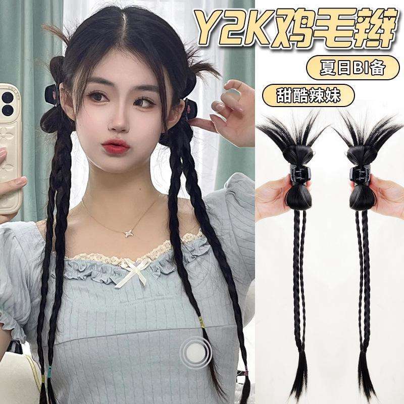 วิกผมถักเปีย Y2K แบบสองเส้น ต่อผมแบบ Shuttlecock ทนความร้อนสูง สไตล์หวาน เท่ แซ่บ หางม้าคู่
