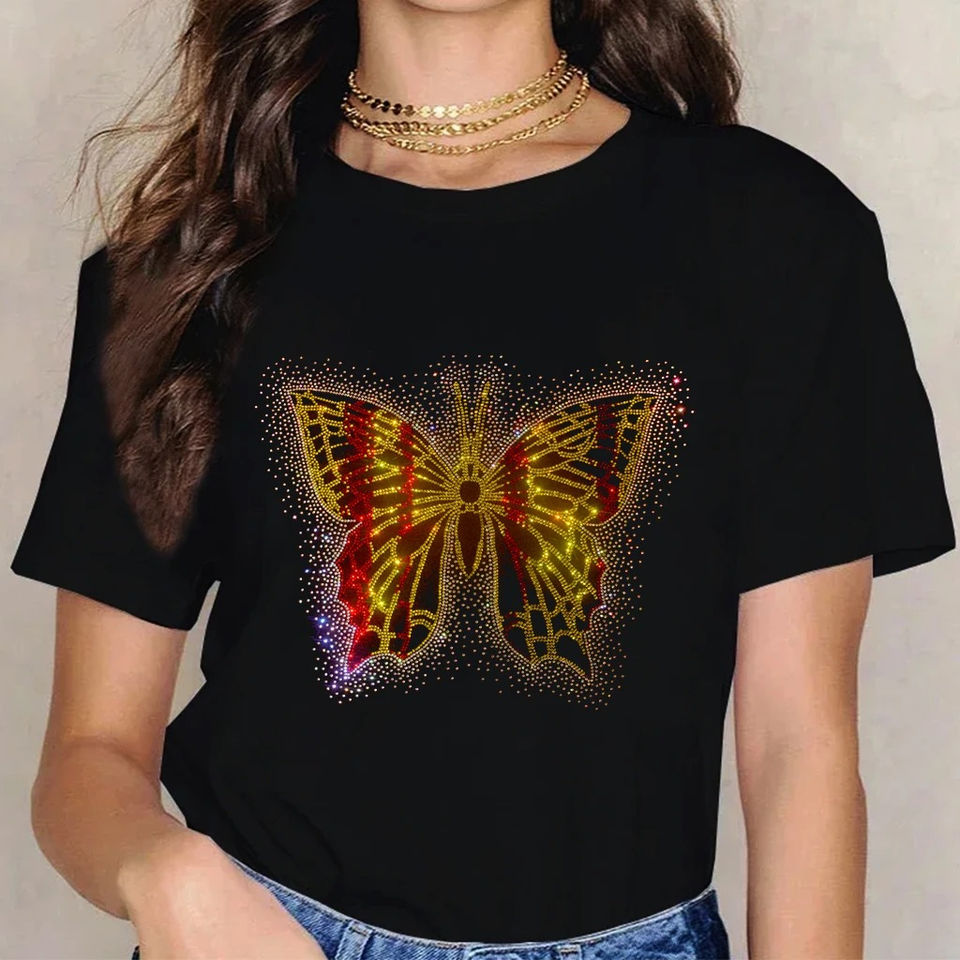 เสื้อยืดไรน์สโตนสำหรับผู้หญิง