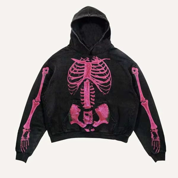 เสื้อฮู้ดโอเวอร์ไซส์ลายกราฟิก Y2K แขนยาวสำหรับผู้ชายและผู้หญิง เสื้อสเวตเชิ้ตถักลายกระดูก สไตล์ฮิปฮอป ลุคดิสเทรส สำหรับฤดูหนาว