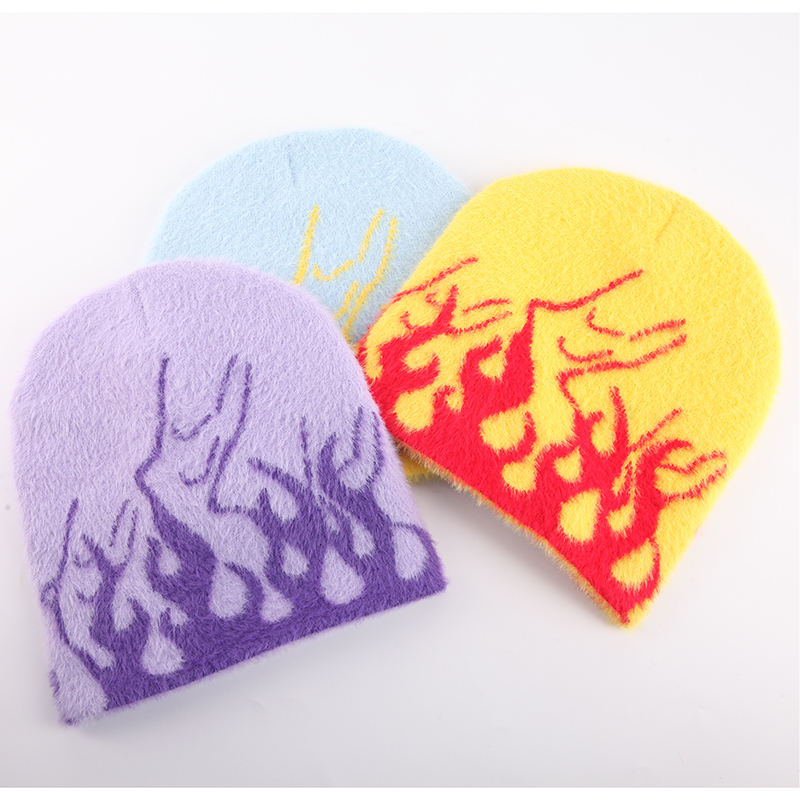 หมวกผ้าถักแจ็คการ์ดสำหรับใส่เดินชายหาดหมวกผ้าฝ้ายลายไฟสำหรับฤดูหนาวโลโก้ตามสั่งแบบ Y2K