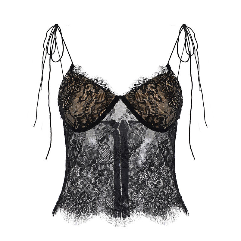 เสื้อครอปท็อปเซ็กซี่แต่งลูกไม้สไตล์ Y2K แฟชั่นสำหรับผู้หญิง สายเดี่ยวลูกไม้ลายขนตา ขายดี