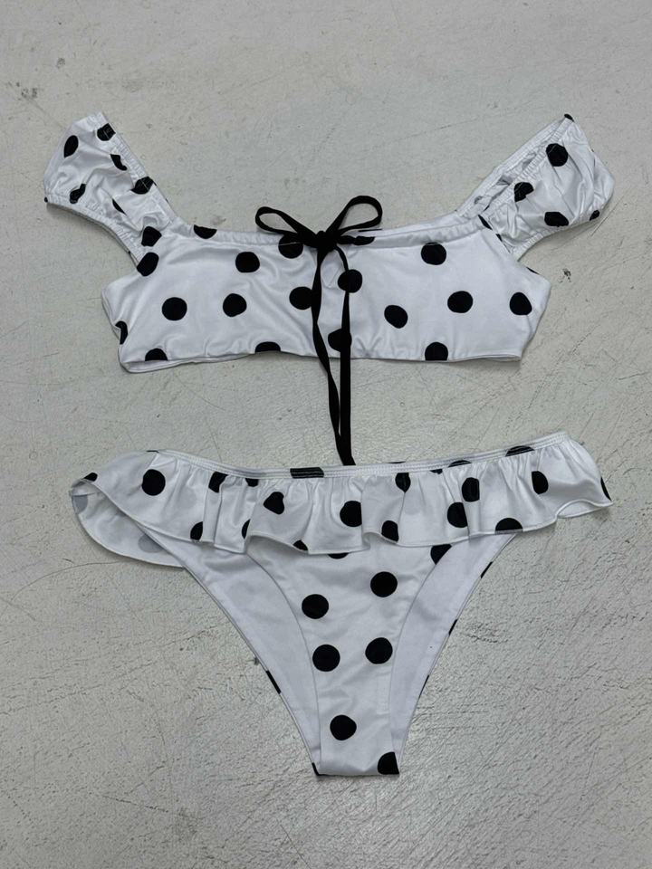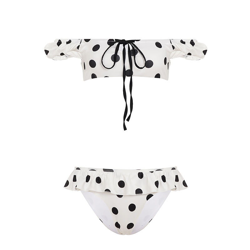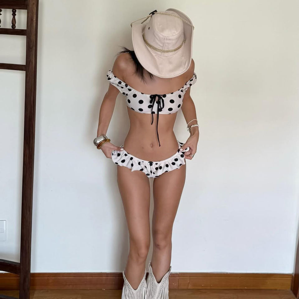ชุดบิกินี่ลายจุด Y2K แบบสั้นเหนือเข่า ชุดว่ายน้ำทรงสามเหลี่ยมผูกเองสำหรับผู้หญิง เซ็กซี่ น่ารัก ชุดว่ายน้ำสองชิ้น สไตล์เรโทร ชุดชายหาด