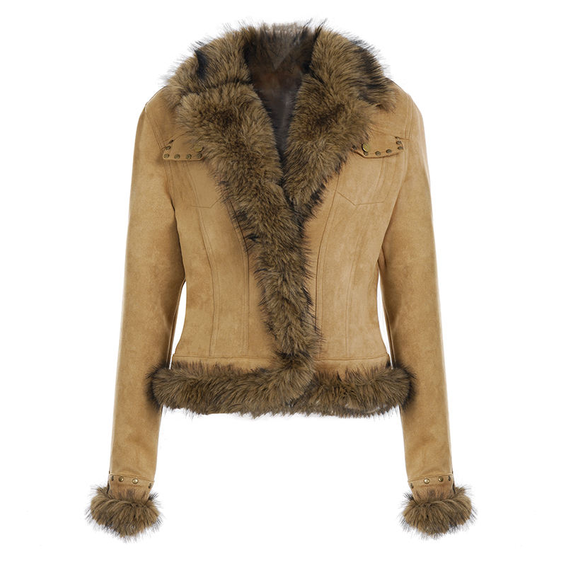 เสื้อแจ็คเก็ตสไตล์วินเทจ Y2K ผลิตจากโพลีเอสเตอร์ที่เป็นมิตรต่อสิ่งแวดล้อม ป้องกันลม ติดกระดุมแถวเดียว แต่งขอบขนเทียม ปกแบบนอตช์ ให้ความอบอุ่นในฤดูหนาว สีพื้น