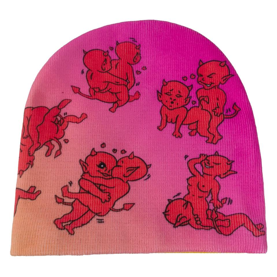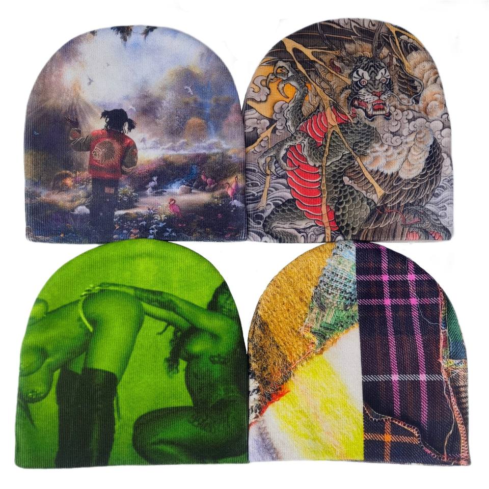 หมวกบีนนี่ผ้าแจ็คการ์ดใช้ได้ทุกเพศหมวกถักอะคริลิค100% พิมพ์รายละเอียดสูงเต็มรูปแบบกราฟิกนุ่มและสบายสำหรับสตรีทแวร์ Y2K