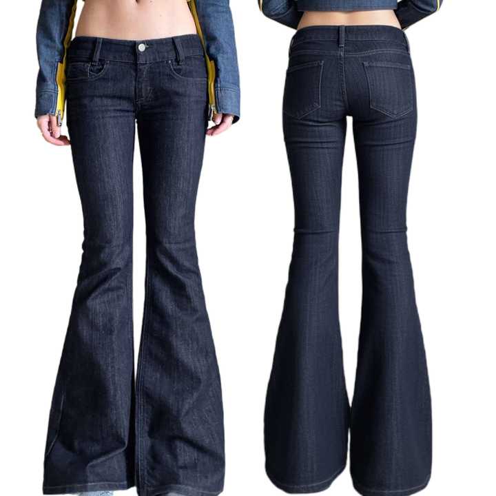 กางเกงยีนส์ทรงขาบานเอวต่ำสไตล์ Y2K ผ้าเดนิมยืดหยุ่น ระบายอากาศได้ดี เป็นมิตรต่อสิ่งแวดล้อม