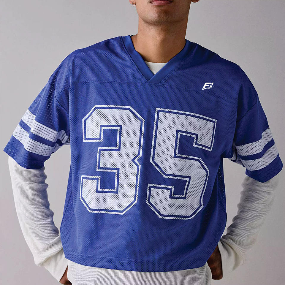 เสื้อเจอร์ซีย์อเมริกันฟุตบอลทรงโอเวอร์ไซส์สไตล์ Y2K ผ้าตาข่าย ระบายอากาศได้ดี สำหรับผู้ชาย เหมาะสำหรับฝึกซ้อมและแข่งขัน รับผลิตแบบ OEM ขายส่งสำหรับผู้ซื้อในสหรัฐอเมริกา