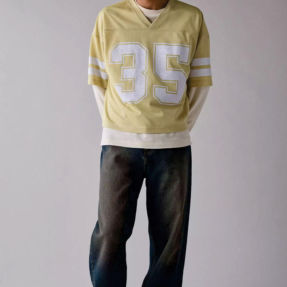 เสื้อยืดสตรีทแวร์สไตล์ Y2K แบบสั่งทำพิเศษ พิมพ์ลายด้วยเทคนิค Sublimation ขายส่ง เสื้อเจอร์ซีย์อเมริกันฟุตบอลผ้าตาข่าย พิมพ์โลโก้ตามสั่ง เสื้อยืดทรงใหญ่