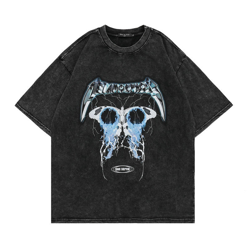 เสื้อยืดคอกลม Y2K ผ้าฝ้าย 100% แบรนด์ส่วนตัว ล้างสีแบบ Acid Wash เสื้อยืดผู้ชายพิมพ์ลายกราฟิกหนา เสื้อยืดวินเทจผู้ชาย