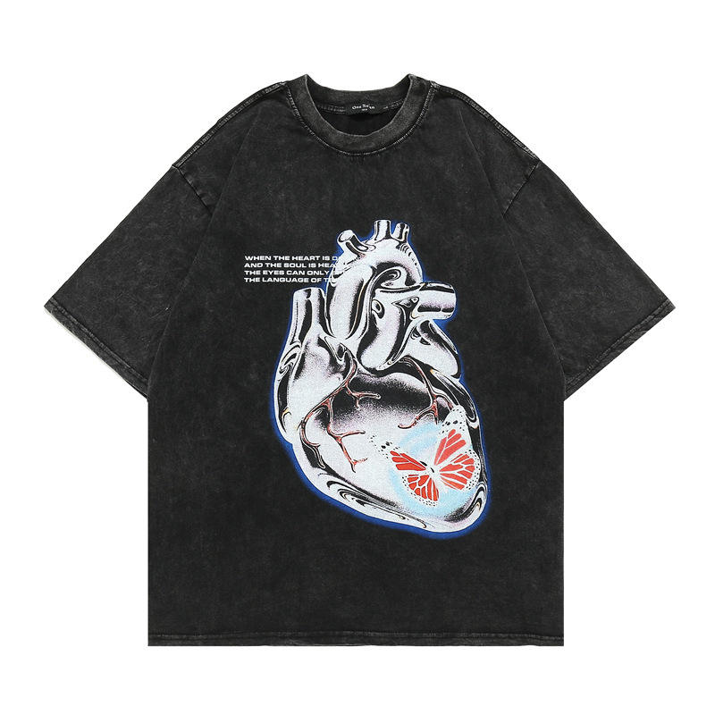 เสื้อยืดคอกลม Y2K ผ้าฝ้าย 100% แบรนด์ส่วนตัว ล้างสีแบบ Acid Wash เสื้อยืดผู้ชายพิมพ์ลายกราฟิกหนา เสื้อยืดวินเทจผู้ชาย