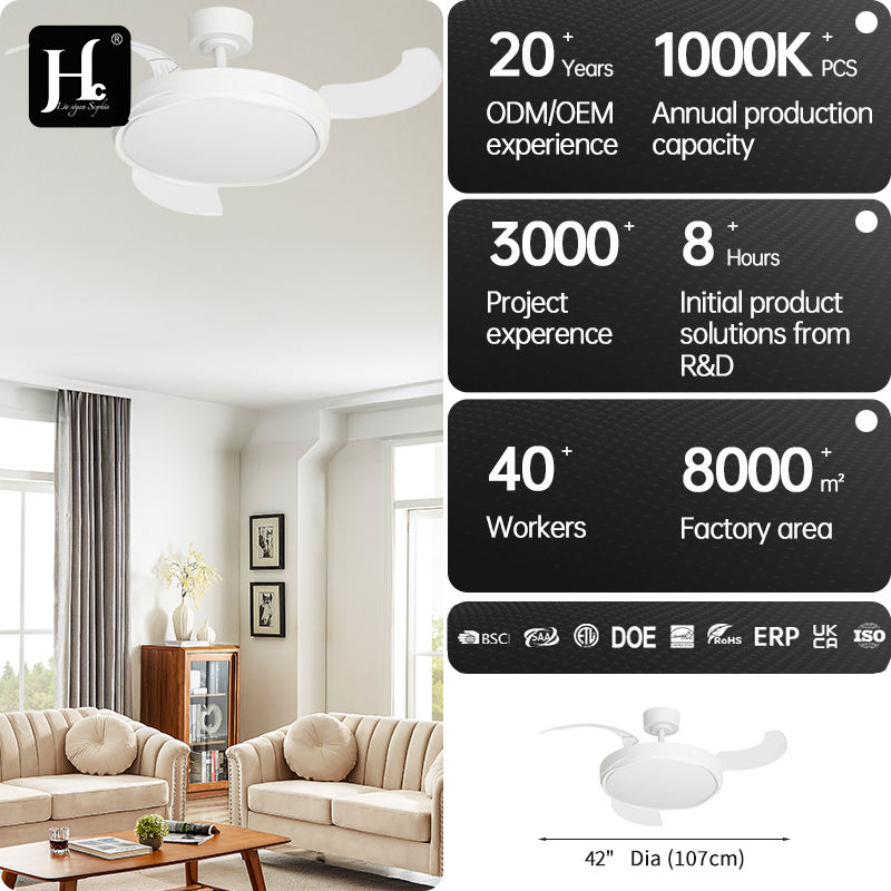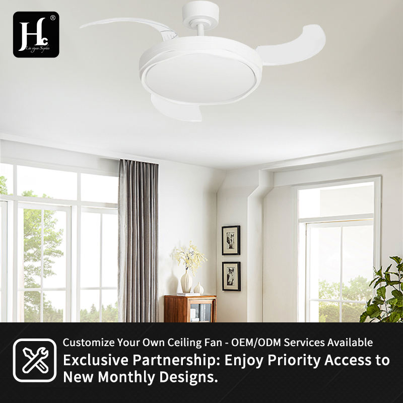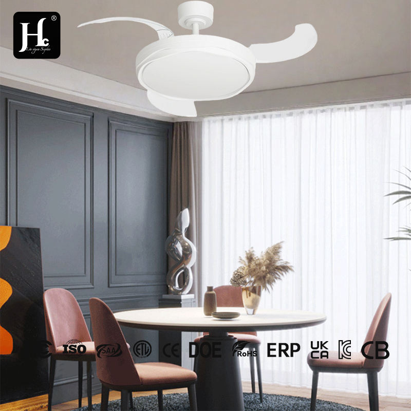 พัดลมเพดานตกแต่ง LED รุ่น Y360 พร้อมรีโมทคอนโทรล ขนาด 36/42 นิ้ว ดีไซน์แบบยืดหดได้ ทันสมัย เหมาะสำหรับห้องนอน
