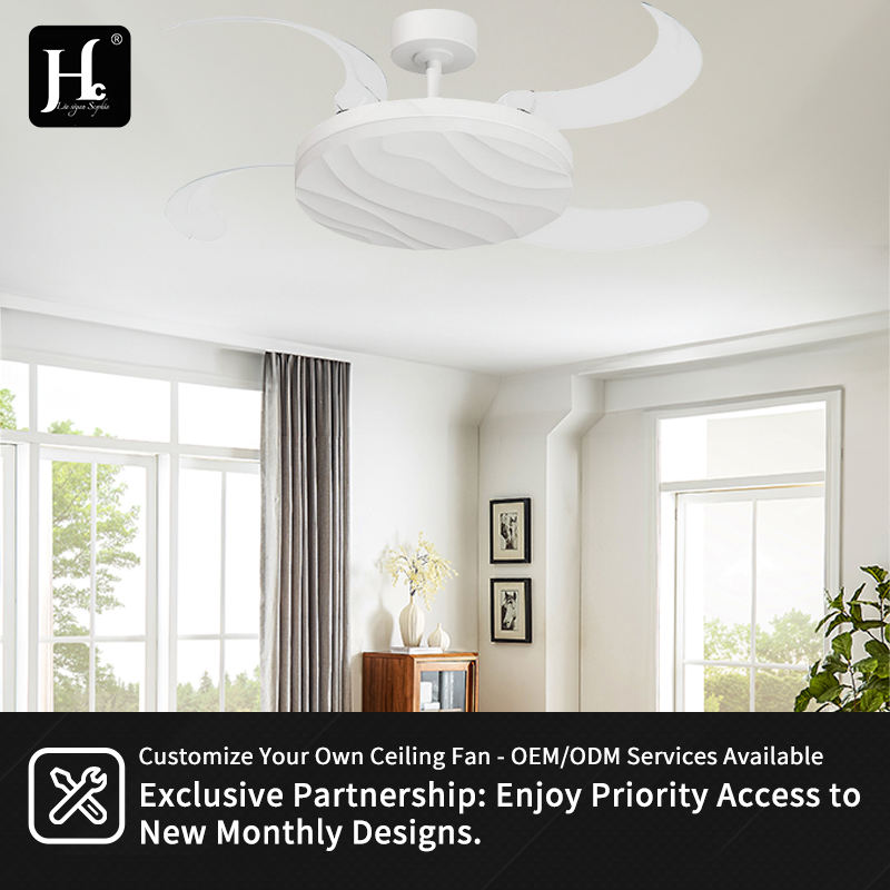 พัดลมเพดาน LED รุ่น Y363 สีขาว ขนาด 42 นิ้ว พร้อมไฟและรีโมทคอนโทรล พัดลม LED แบบซ่อนใบพัดสำหรับใช้ภายในอาคาร