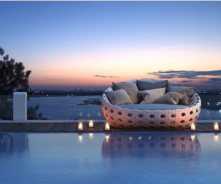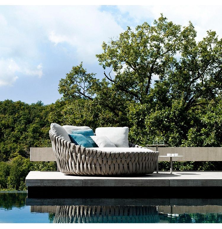 Y441D Modern Fiberglass Outdoor Sunbath Deck Chair Set Durable Breathable Lazy Chaise Recliner Sofa Comfortable Leisure Hotel