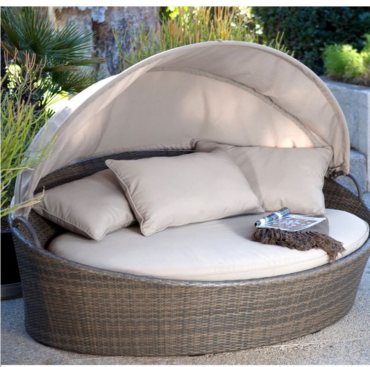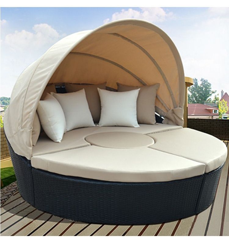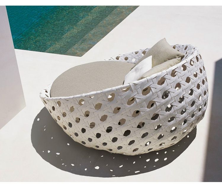 Y441H Customized Rattan Public Lounge Furniture Beach Seating Sunbath Canopy Circle Deck Chairs Chaise Easy Lazy Chair Sofa