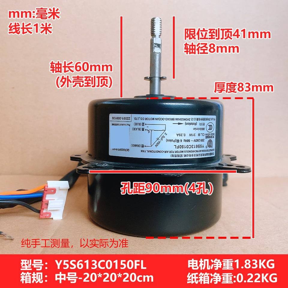 มอเตอร์ AC รุ่น Y5S613C0150FL ขนาด 150 มม. แบบเฟสเดียว ชนิดยึดแบบหน้าแปลน สำหรับพัดลมภายนอกเครื่องปรับอากาศ TCL
