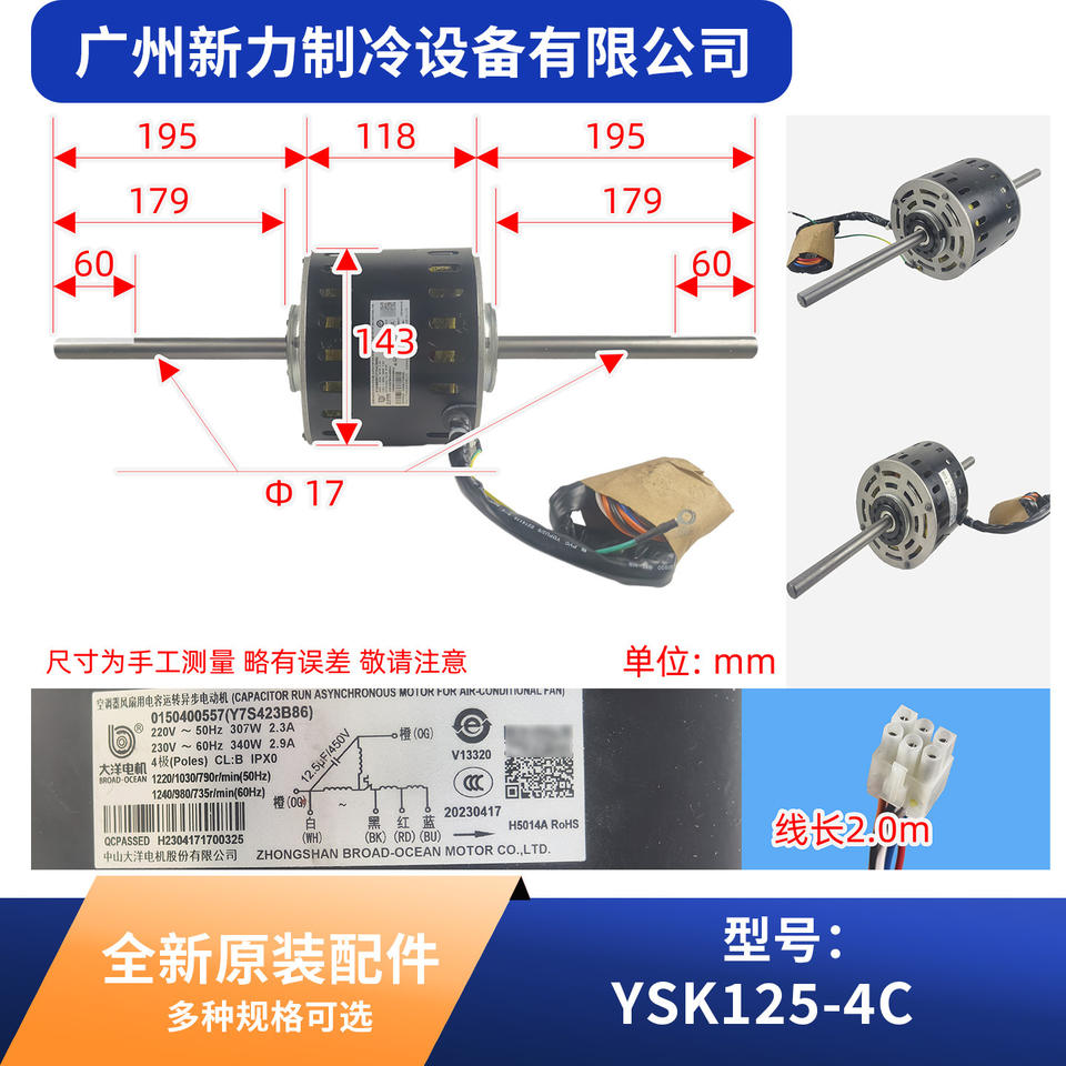 Y7S423C594 มอเตอร์พัดลม YSK125-4C 0150400557 โลหะทนทานไฟฟ้าสำหรับชิ้นส่วนเครื่องปรับอากาศส่วนกลาง