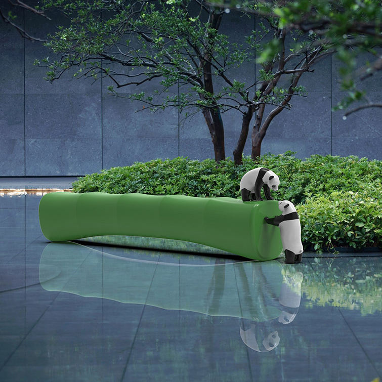 Y888 Panda sculpture bamboo bench