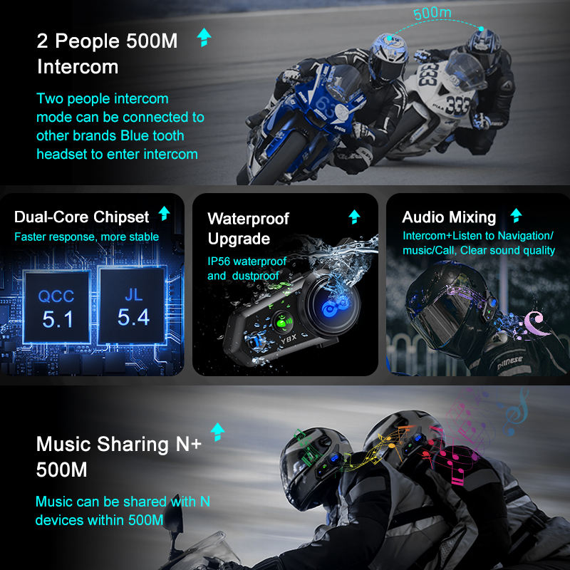 8ผู้ขับขี่รถจักรยานยนต์อินเตอร์คอมกับการแบ่งปันเพลงสไตล์การออกแบบ