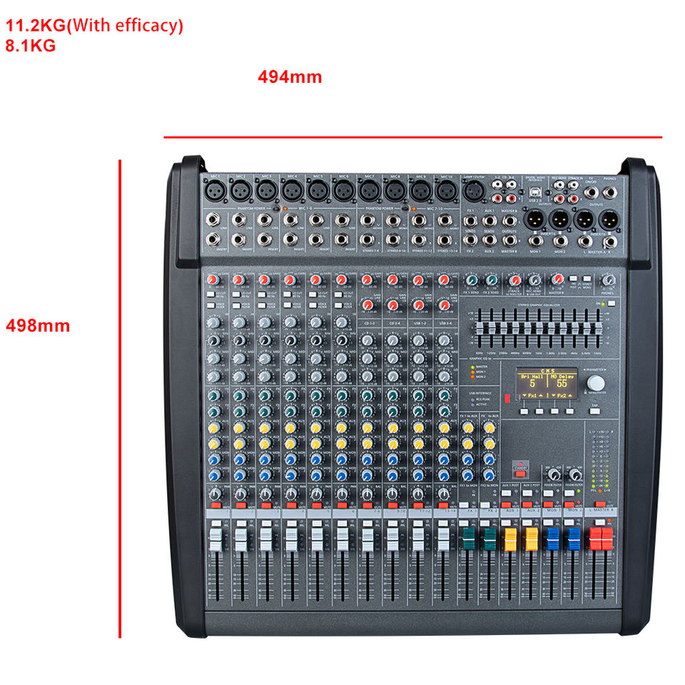 YAIKA DMX1400 เครื่องขยายเสียงระดับมืออาชีพ 1000W *2 กำลังขับสูง 14 แชนแนล สำหรับดีเจ คาราโอเกะ พร้อมเอฟเฟกต์ 198 แบบ