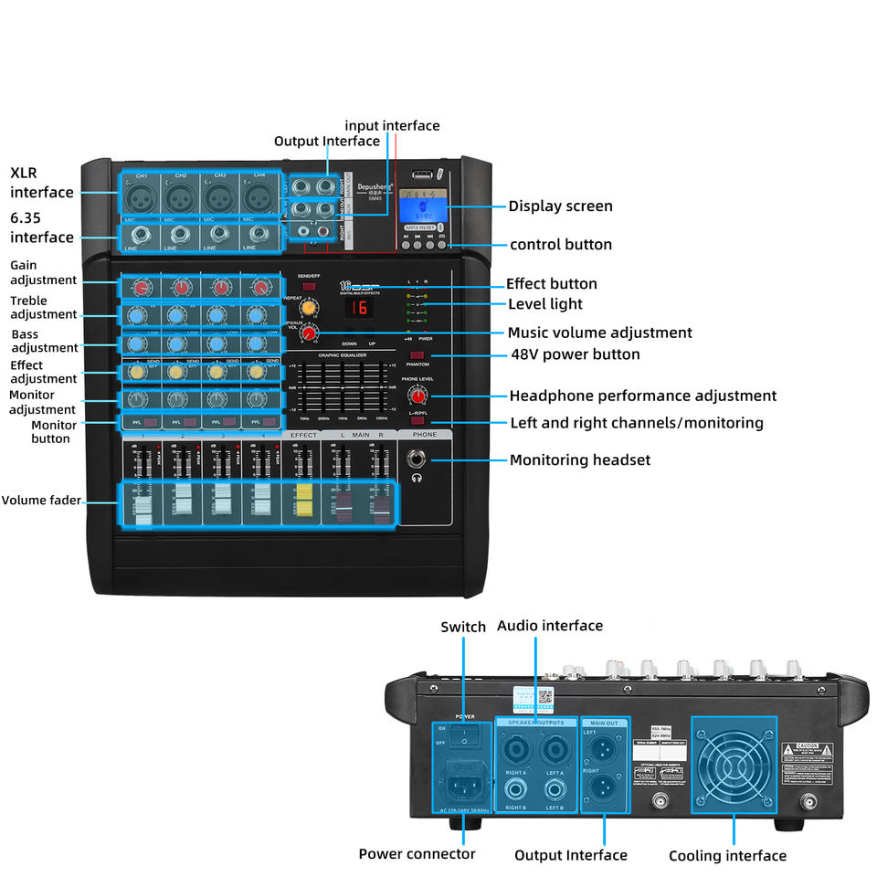 YAIKA GM4X รุ่นใหม่ล่าสุด มิกเซอร์กำลังขับ 350W*2 พร้อมพอร์ต USB ในตัว แอมพลิฟายเออร์ในตัว มิกเซอร์เสียง 4 แชนแนล