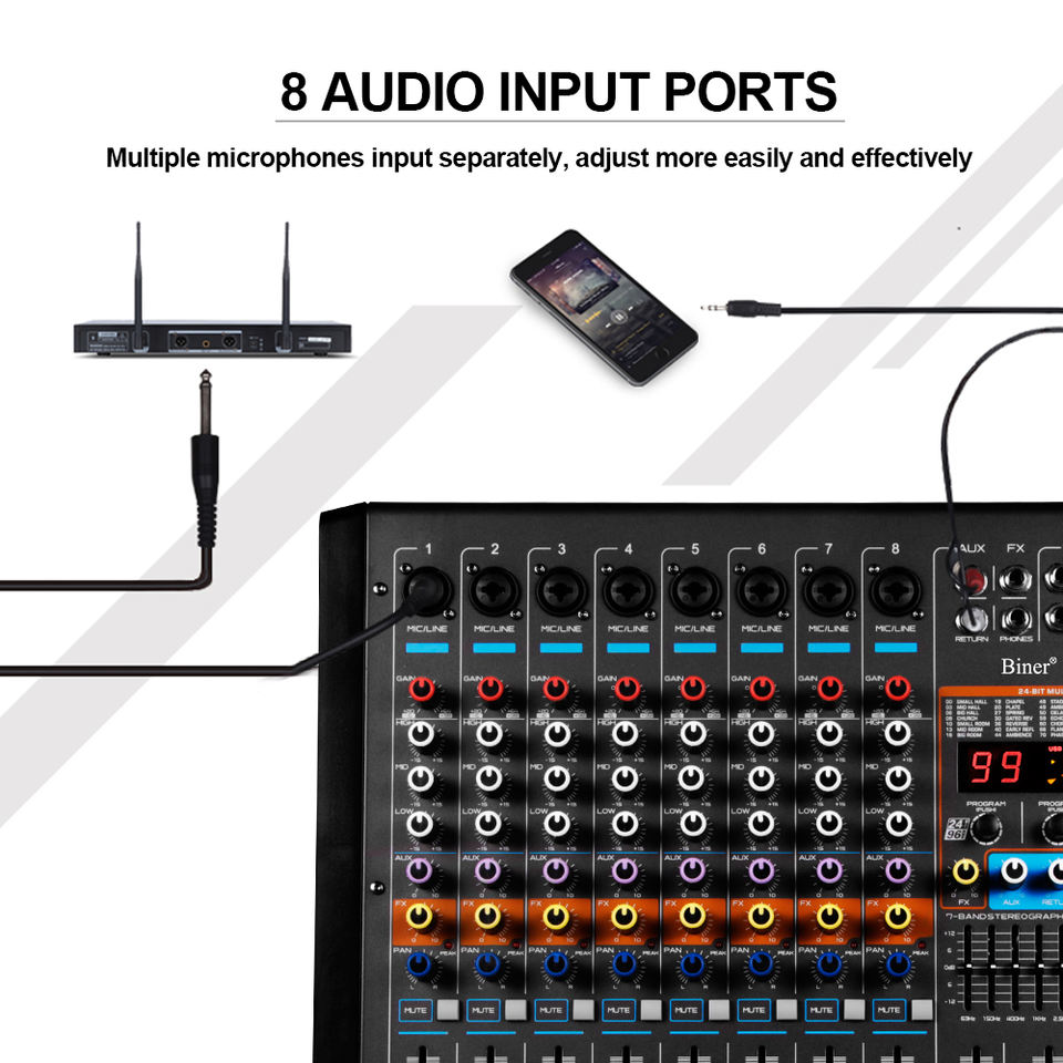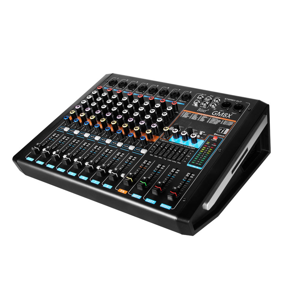 มิกเซอร์เสียง YAIKA GM8X ระดับมืออาชีพ 8 ช่องสัญญาณ ตัวเครื่องโลหะและพลาสติก กำลังขับ 550 วัตต์*2 พร้อม DSP ในตัว รองรับบลูทูธ ได้รับการรับรองมาตรฐาน CE เสียงสเตอริโอ/เซอร์ราวด์