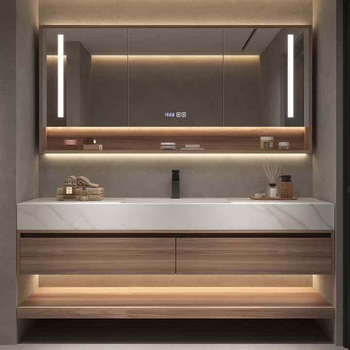 ชุดตู้ห้องน้ำติดผนังแบบลอยตัวพร้อมกระจก LED กันน้ำ ดีไซน์ทันสมัย คุณภาพสูงจาก YALIG