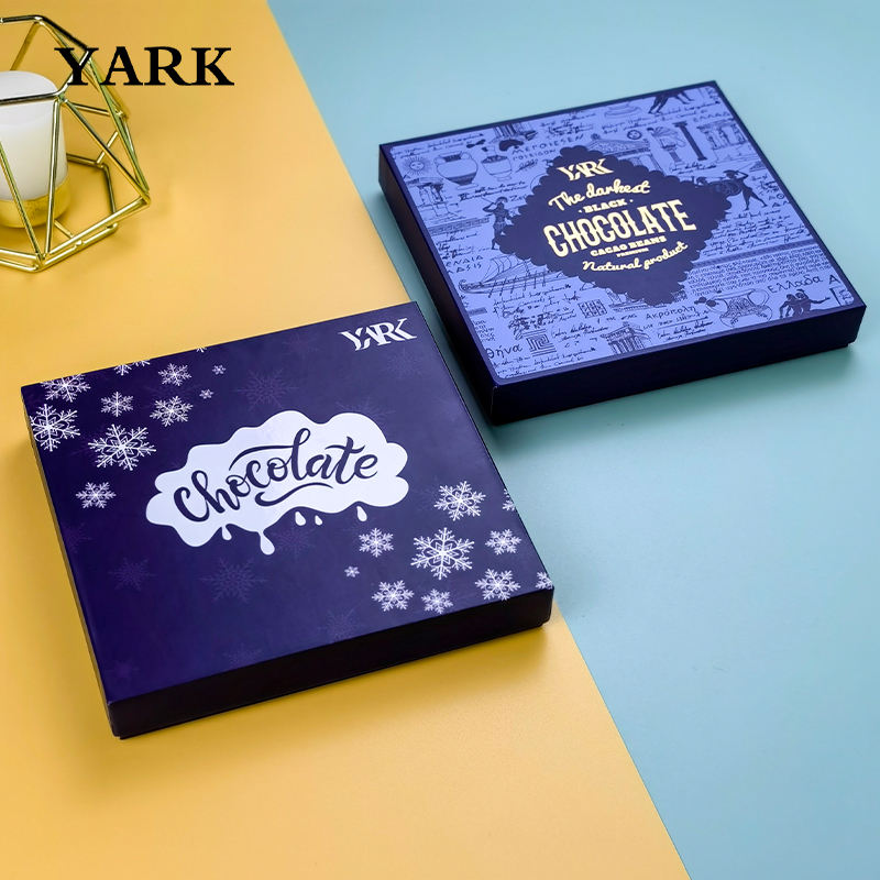 กล่องบรรจุภัณฑ์ช็อกโกแลตบองบองสุดหรูแบบกำหนดเองของ YARK พร้อมการเคลือบด้าน พิมพ์ลายนูน UV พร้อมตัวแบ่งช่องทำจากพลาสติกและกระดาษ